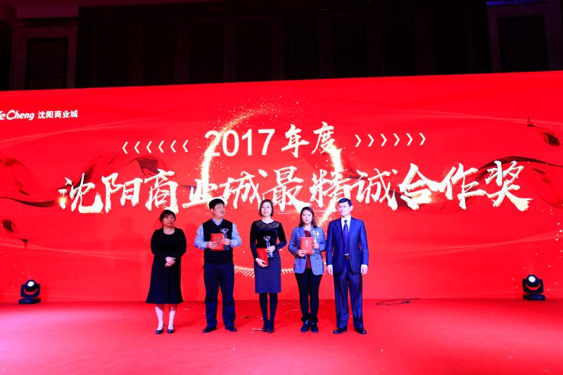 活动现场,陈哲元董事长、钟静总经理代表沈阳商业城向萃华金店、周大福品牌、辽宁和慧仓商贸、影儿会所颁发了2017年度最精诚合作奖。